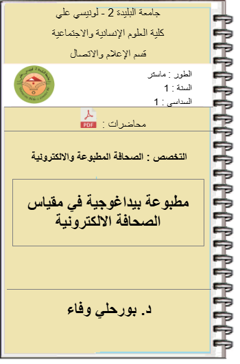 إعلام اتصال الاتصال الجماهيري والوسائط الجديدة الصحافة المطبوعة والالكترونية سنة أولى جذع مشترك سنة ثانية إعلام واتصال